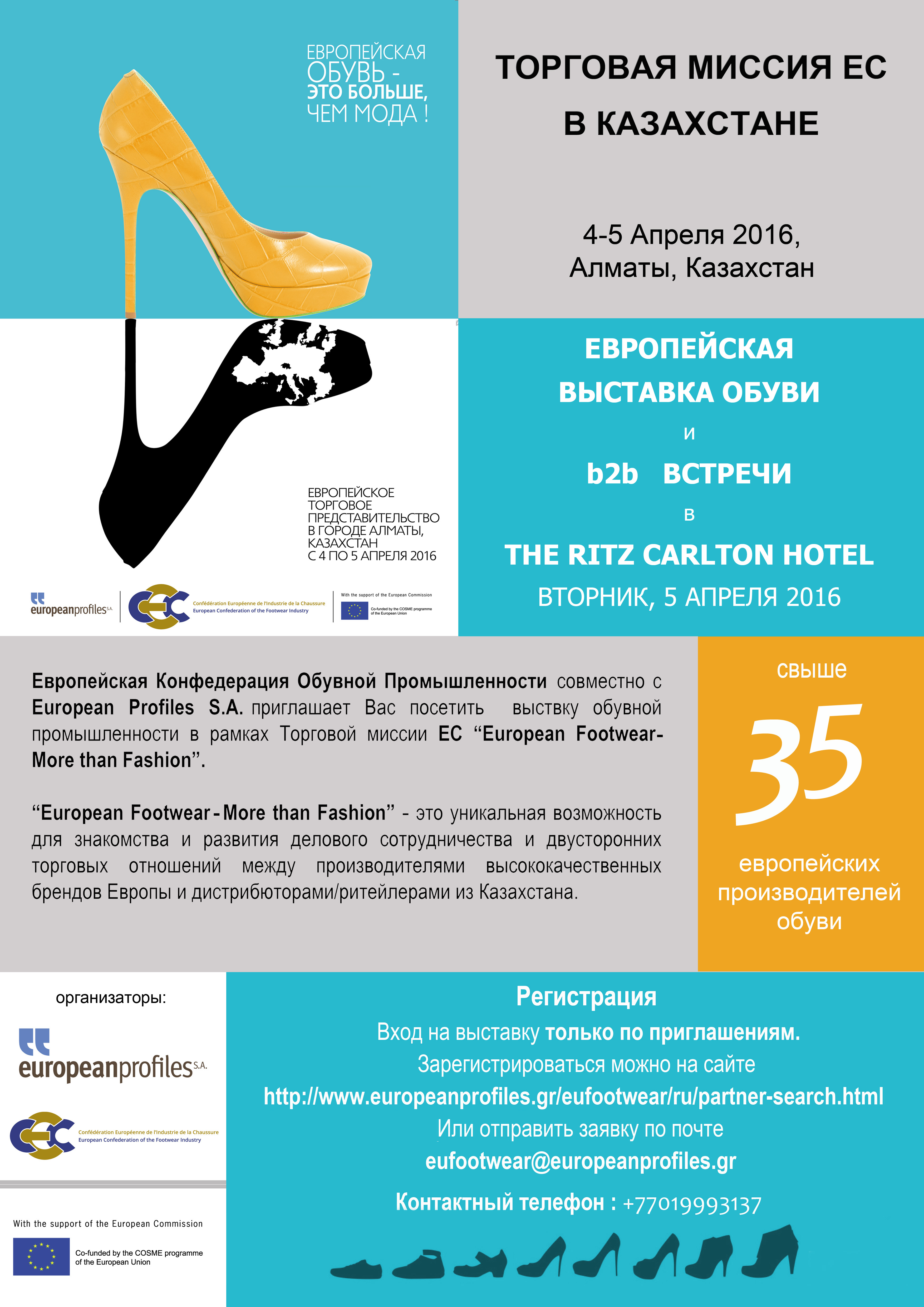 Целью проекта является содействие развитию МСП ЕС в Казахстане. Он будет поддерживать выход европейской обуви на новые рынки, в то время как вклад в признание отличительной Европейского обуви.